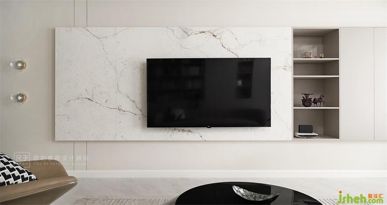客廳通過(guò)巖板、飾面板等材質(zhì)的運(yùn)用,深圳裝修設(shè)計(jì)以簡(jiǎn)練的設(shè)計(jì)語(yǔ)言,恰如其分地搭配提升品質(zhì)與層次感;沙發(fā)背景墻書(shū)柜文藝的設(shè)計(jì),與空間淡雅的調(diào)子,打造一個(gè)舒適、精致,又充滿詩(shī)意的氛圍。
