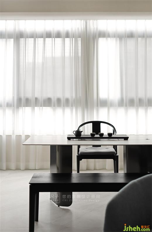 陽(yáng)臺(tái)與客廳視野一覽無(wú)余,摒棄匆忙且紛擾的生活圍城,暢聊閑聊、喝一盞茶,陽(yáng)光透過(guò)紗簾傾瀉,達(dá)至更精致的生活享受。