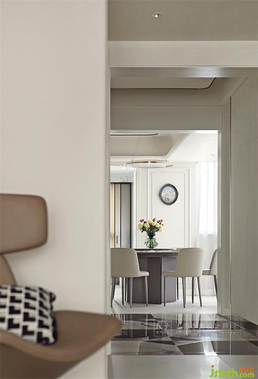 溫潤(rùn)純凈的氛圍中,過道盡頭掛畫的點(diǎn)綴,使空間不會(huì)過于單調(diào),也會(huì)更添時(shí)尚氣質(zhì)。