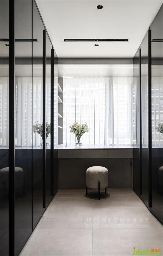 遵循洗漱-換衣梳妝的動(dòng)線,來安排主衛(wèi)與衣帽間的布局,家裝設(shè)計(jì)將起床后與入睡前的準(zhǔn)備工作集中于這一區(qū)域去解決。