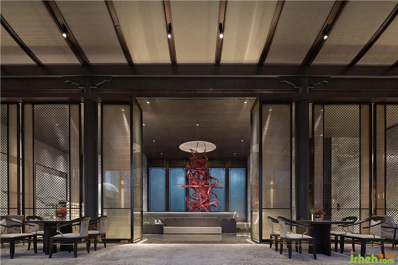 山水之間在于一個(gè)“隱”字,樓閣隱于天青煙雨中,虛實(shí)隱于秩序變換里,文化的傳承則隱匿于每一處,將空間作為時(shí)間的表達(dá)載體,賦予每件器物獨(dú)特的語(yǔ)言,譬如銀杏花葉的燈,朱紅色的果,紋理錯(cuò)落有致的房梁....在細(xì)節(jié)中窺見(jiàn)歷史真相,此情此景仿佛在千百年前的平行時(shí)空真實(shí)存在。