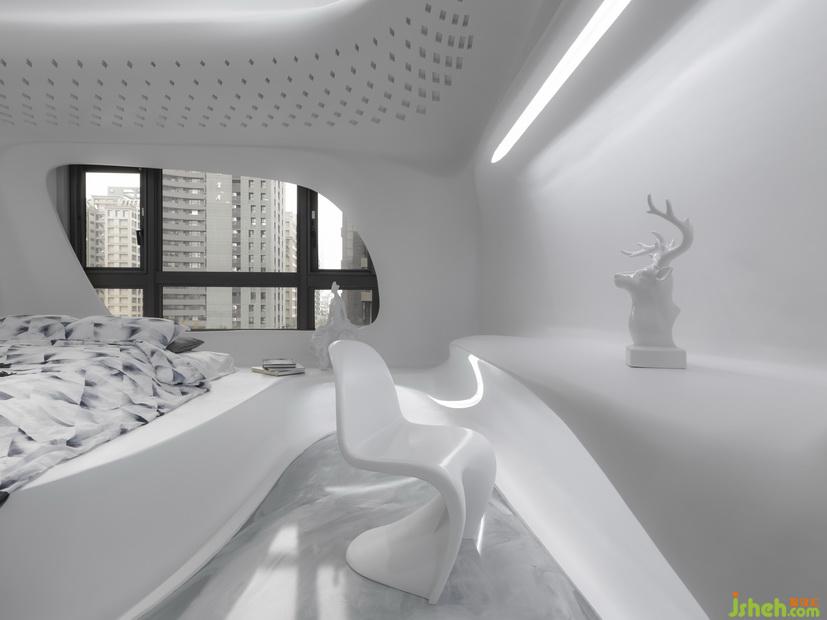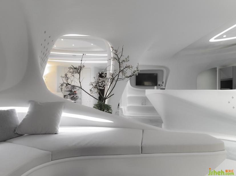 光帶從地板,強體,一路到天花,進(jìn)而延伸到不同區(qū)域,形成光雕的效果。在家觀賞影片時,影像直接投射牆面上,因為曲面產(chǎn)生放大與延伸效果,也帶來意想不到的樂趣,不需要其他擺飾,空間本身流動性就足以創(chuàng)造出無窮的豐富表情。