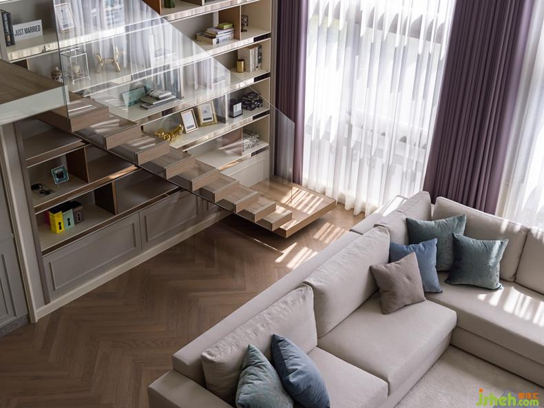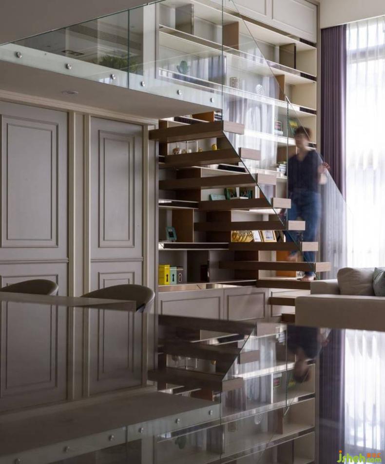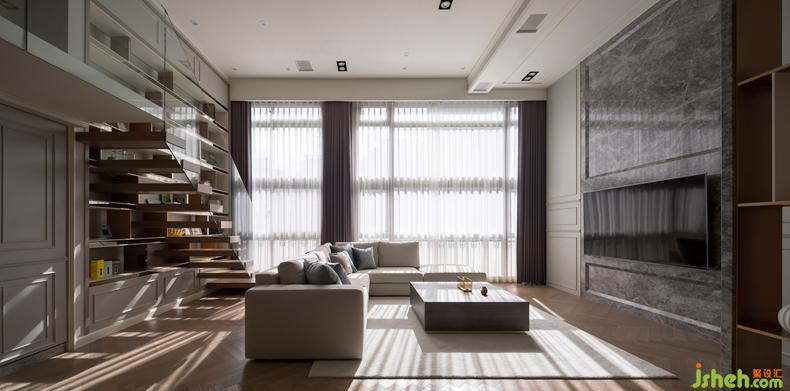 由于藝術(shù)美學(xué)與生活型態(tài)得交錯(cuò),設(shè)計(jì)師考慮了空間上運(yùn)用之色彩藝術(shù)和感受體驗(yàn)的素質(zhì),溫潤(rùn)的木質(zhì)地板引導(dǎo)到干凈利落大方的懸壁樓梯,而虛實(shí)交錯(cuò)的玄關(guān)隔屏,視覺(jué)映入至后方展示柜,降低彩度的灰白色調(diào),與細(xì)致的鐵件,巧妙融合在空間中,顯得別致耐咀嚼。設(shè)計(jì)公司