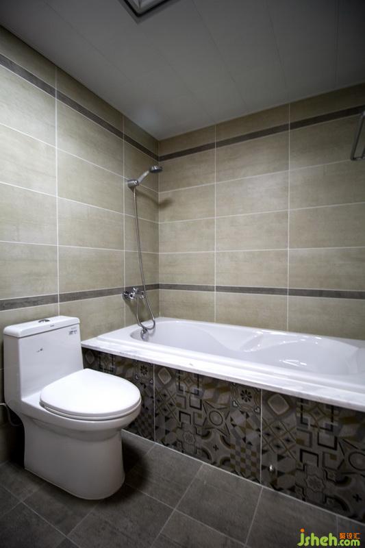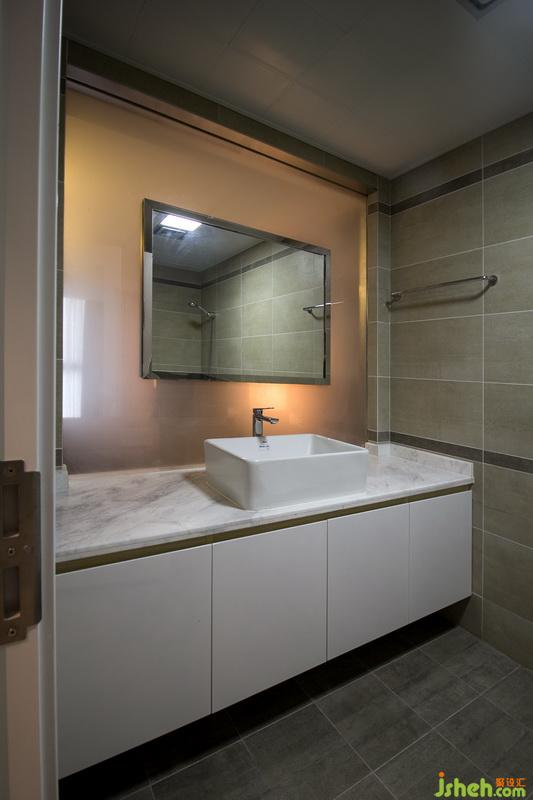 主衛(wèi)——原先是暗衛(wèi),采光不好,所以室內(nèi)設(shè)計(jì)師采用了半敞開的設(shè)計(jì),把靠房間的墻體改為磨砂玻璃,在上面又掛了一幅畫,相當(dāng)獨(dú)特吧!