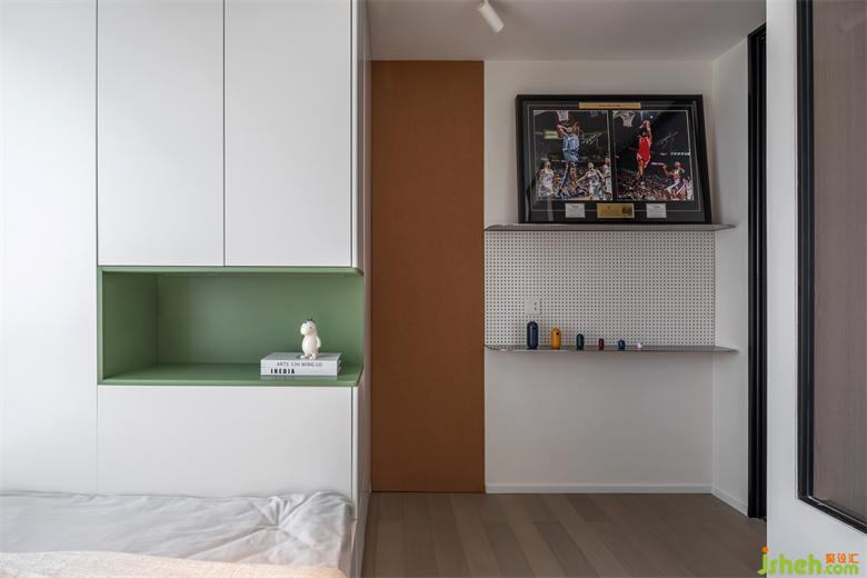 奶白色調給人一種冷靜、內斂,它會讓你感受到空間的寧靜和平和!臥室墻面增添清新綠收納,營造一種清新、淡雅的氛圍。
