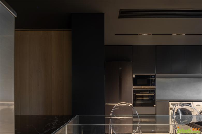 通過對(duì)場(chǎng)域?qū)傩缘纳疃韧诰?,廚房也被賦予了深邃與流動(dòng)并存的設(shè)計(jì)蘊(yùn)涵。明滅光影的虛實(shí)互映、空間尺度的精準(zhǔn)把握,融府裝修設(shè)計(jì)讓烹飪、交流、聚集的實(shí)質(zhì)需求得到滿足,同時(shí)也暗示著多維的場(chǎng)景敘事可能