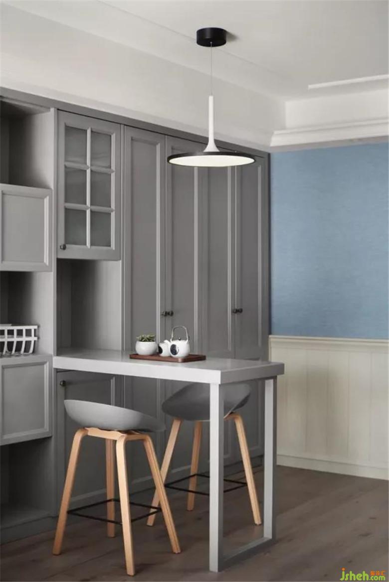 同色系的小吧椅完全沒有任何突兀感,渾然一體。