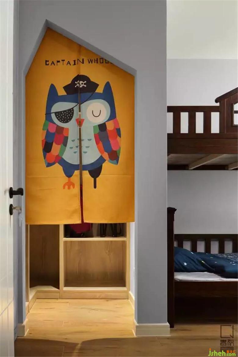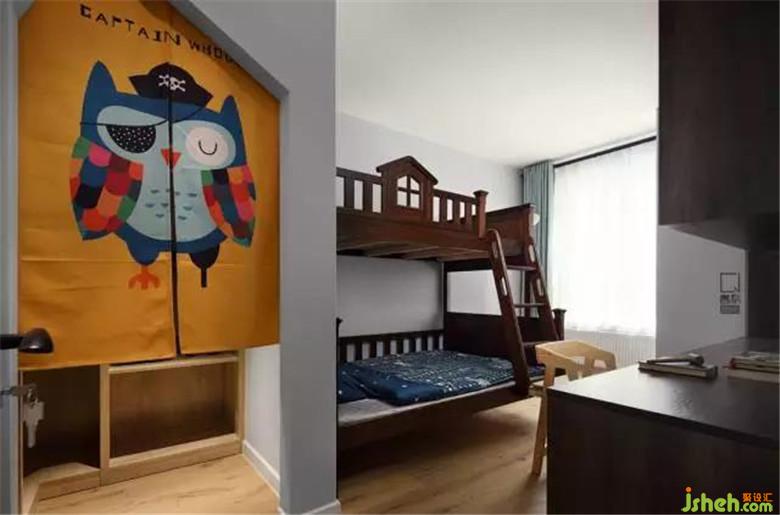 可愛的貓頭鷹,守護(hù)著兩個寶貝讓他們香甜入夢。上下鋪的設(shè)計不僅節(jié)省了空間,更具溫情。