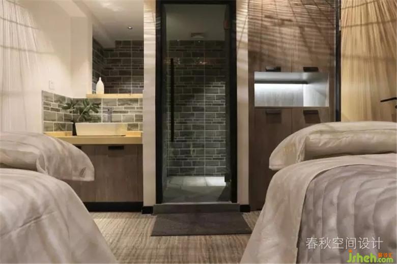 室內(nèi)設(shè)計師以灰色墻磚為主基調(diào),質(zhì)樸安靜,加上床頭一抹明亮的黃色,舒適的氣氛從整個空間里跳脫出來