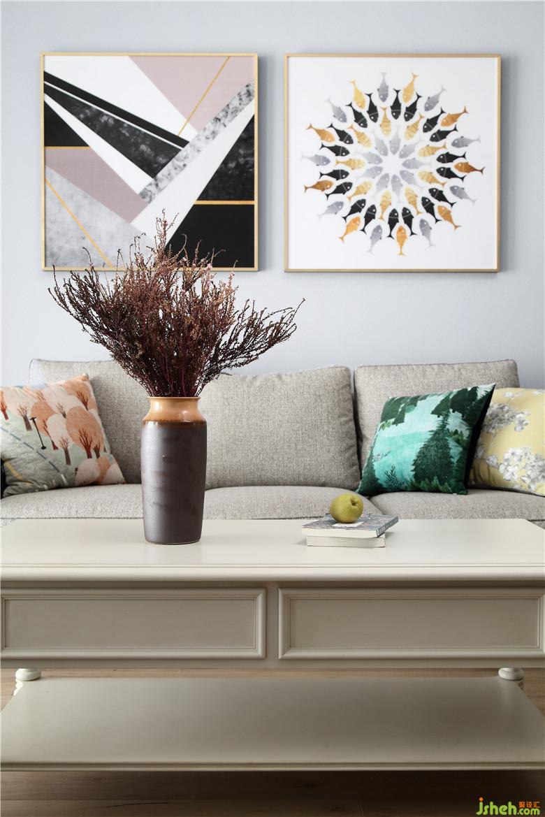 在沙發(fā)上閱讀小憩,簡(jiǎn)約的壁畫與綠色盆栽為伴,慵懶卻透著優(yōu)雅精致。