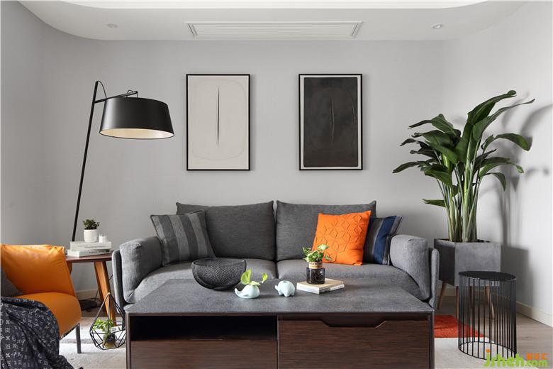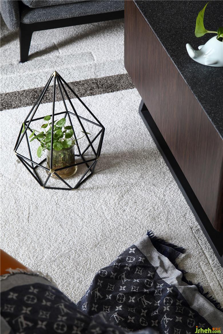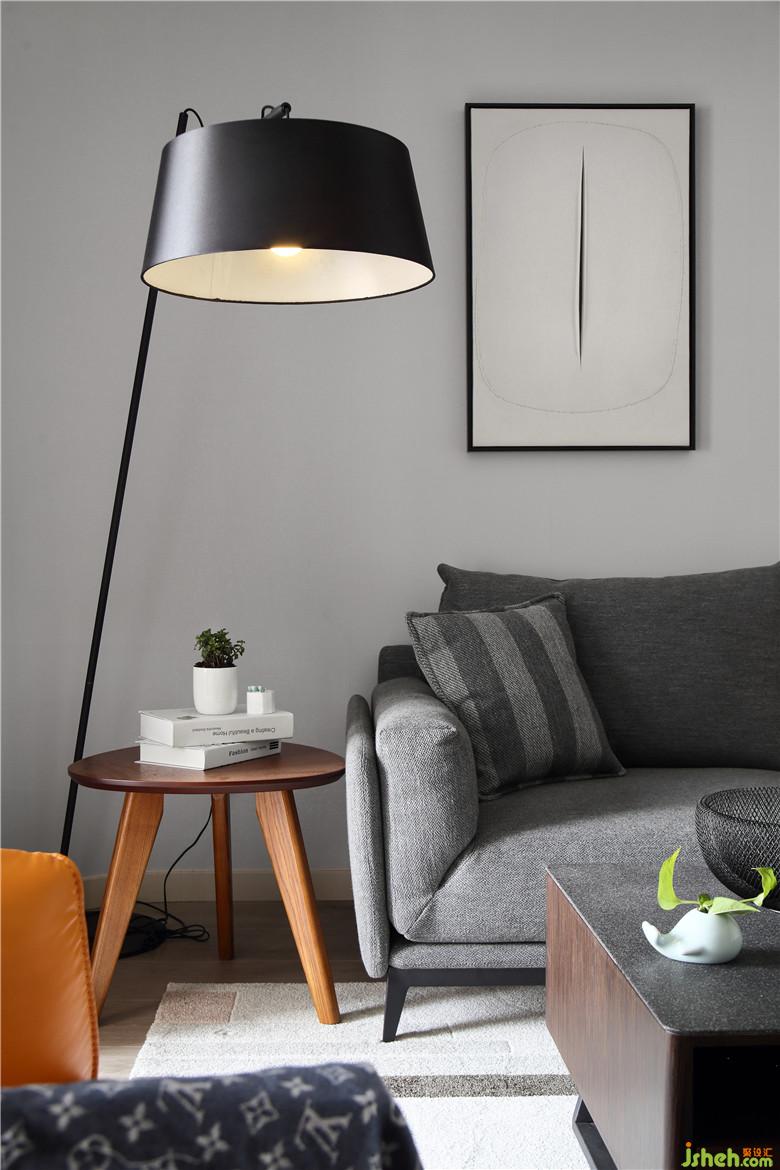 室內(nèi)設(shè)計師搭配深灰色的沙發(fā)、黑色的臺燈與整個空間的色系完美吻合,端莊、大氣、盡顯生活品味。