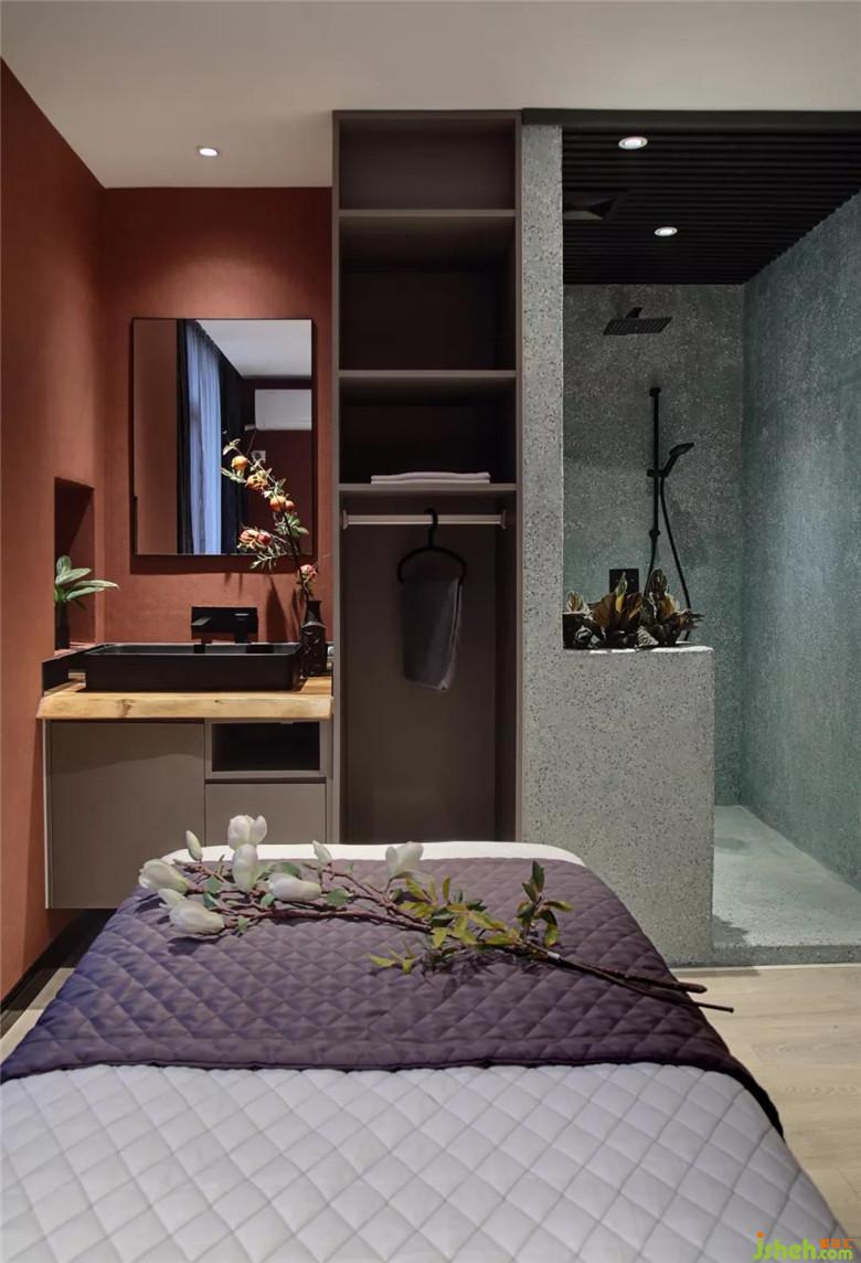 房間的主要色系從樓梯間延續(xù)上來,淋浴區(qū)營造了一種在自然中沐浴的感覺,整體的色系以及用品經(jīng)過設(shè)計師和店主的用心搭配,希望客人在自然舒適的環(huán)境中用心感受精油芳療帶來的身心放松!