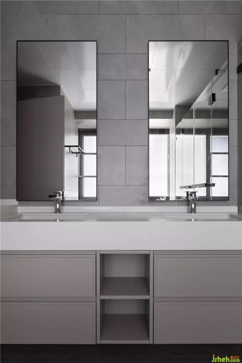 主臥里的衛(wèi)生間,硬朗簡練的雙臺盆設(shè)計,讓業(yè)主夫婦起床后,可以同時進行洗漱,一同開啟新一天的美好。