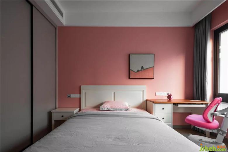 簡潔的吊頂設(shè)計,保證了臥室空間的高度,免除了壓迫感。粉與白組合出小女孩甜美的夢想。
