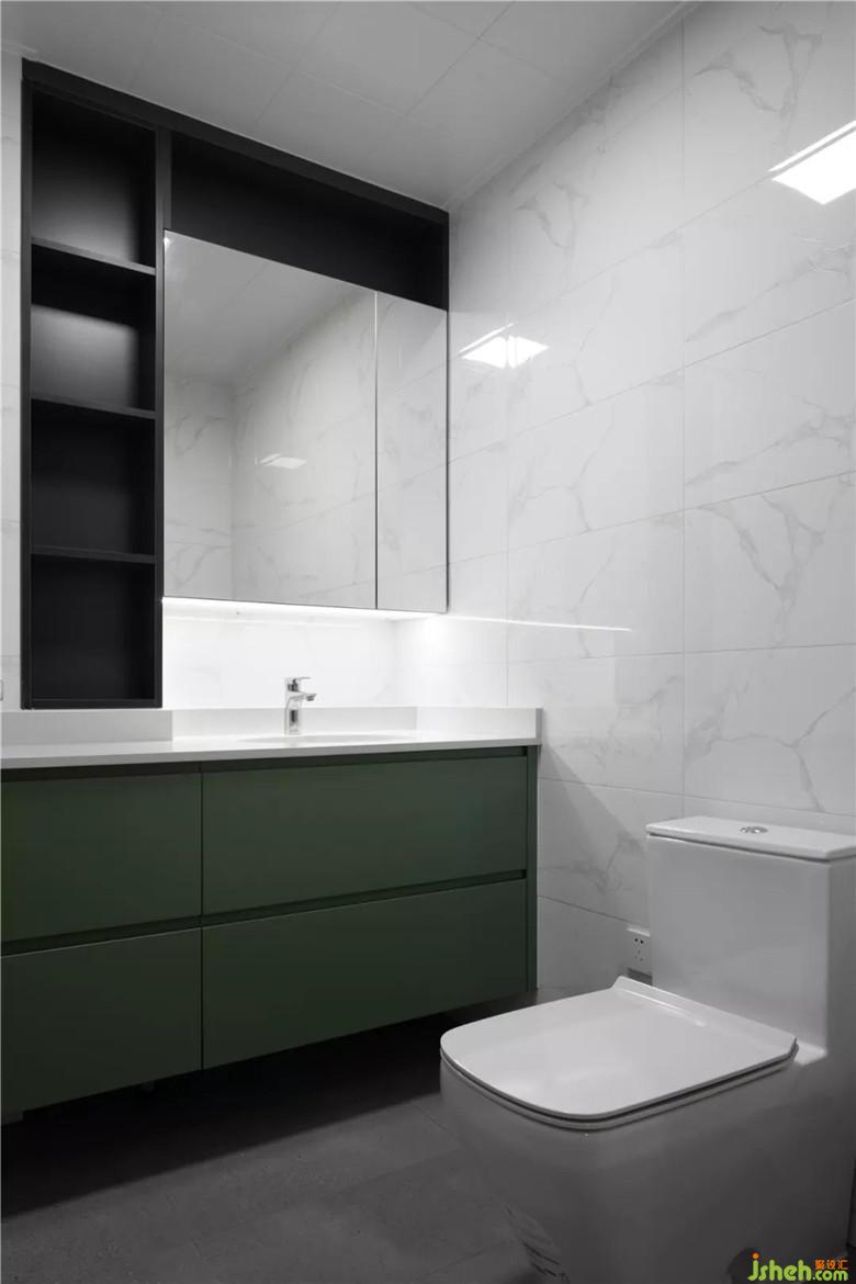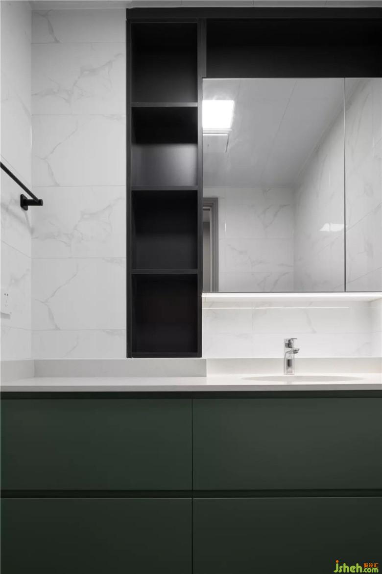 鏡柜與旁邊的物品放置柜相結合,給日常用品足夠的擺放空間。有藏有露的設計,擺放再多物品也十分整齊。裝修公司