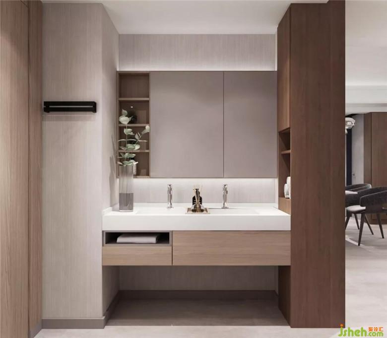 懸空式的衛(wèi)浴潔具,保證視覺上的寬闊感。嵌入式的收納設(shè)計(jì),依照居住者的生活習(xí)慣,合理規(guī)劃,將空間極致利用,不動(dòng)聲色地提升生活的品質(zhì)。