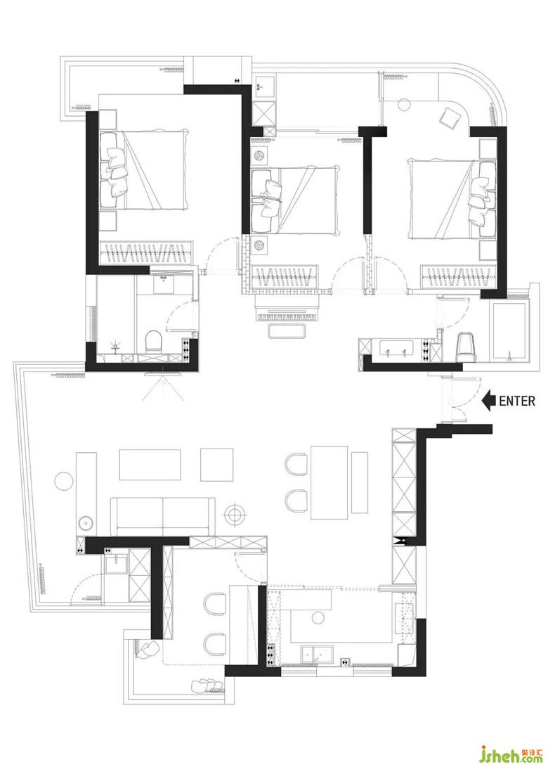 每個(gè)工作日的早晨都是一場戰(zhàn)爭,干濕分離式、雙臺(tái)盆的設(shè)計(jì),免去了忙碌早晨對衛(wèi)生間的爭搶。