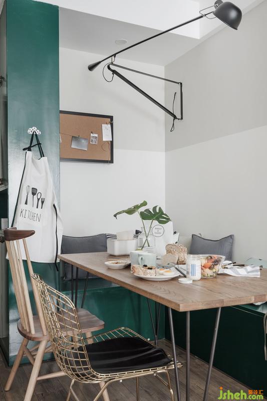鞋柜背后的卡座是滿滿的儲物空間,也可同時多人就坐用餐,業(yè)主尤其鐘愛綠植,綠色是整屋最主要的點(diǎn)綴色,始終貫穿其中。