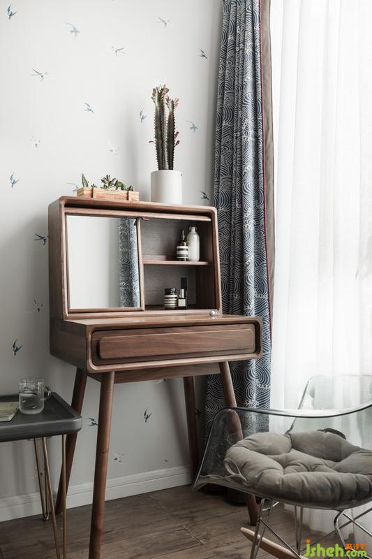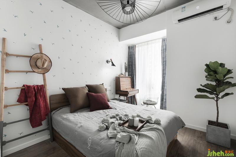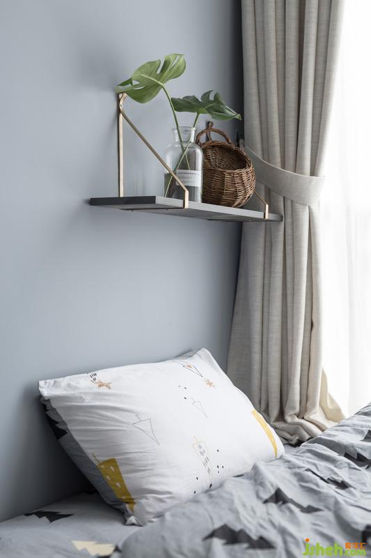 臥室走的是北歐日式感,更靜謐,水泥頂拉伸了整屋層高,室內(nèi)設(shè)計師選擇高箱床增加了儲物空間,將原飄窗位結(jié)合做榻榻米床,兼?zhèn)鋬ξ锱c睡臥的使用