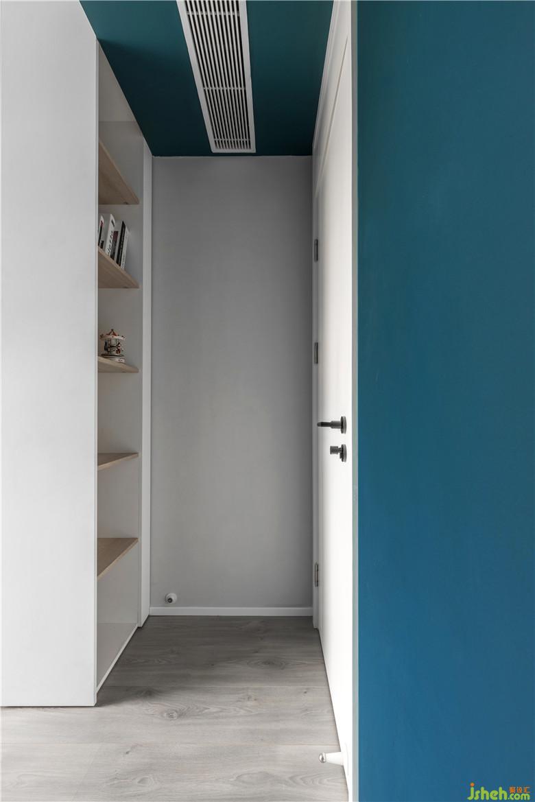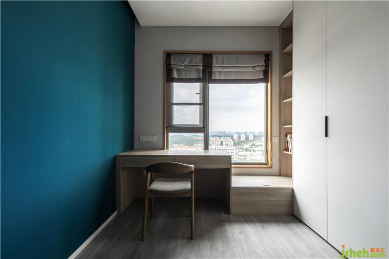 設計初期,考慮的這里就是未來的兒童房,當然,如果入住,前期肯定是周先生與周太太來使用,書桌連接卡座延伸書柜再到衣柜,都將小小房間功能最大化了,孩子大一些后,房間的獨立配套也是完善的。