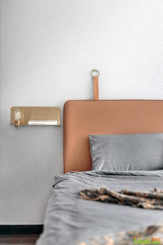 沉穩(wěn)的灰度空間,室內(nèi)設(shè)計(jì)師搭配具有復(fù)古韻味的牛皮面床靠墊,有一股率性,亦透露著本質(zhì)的細(xì)膩,保養(yǎng)清潔也是很方便。