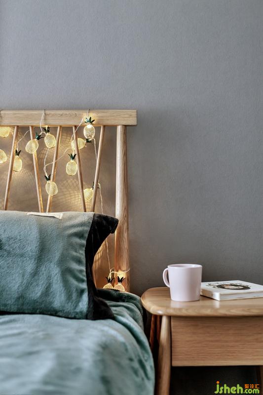 這里暫時(shí)沒(méi)有要床頭柜,也是要留給女主人添置,三寶喜歡看書(shū),所以床頭壁燈形態(tài)考慮了閱讀置物的部分。