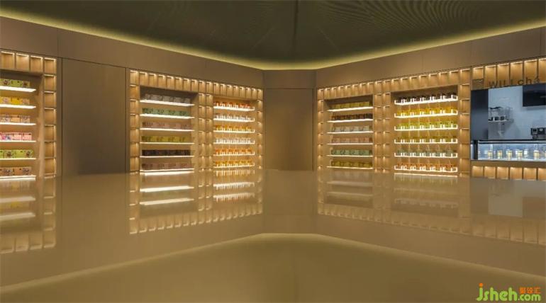 WILLchá品牌旗艦店占地面積并不大,但就是這么一個小小的空間,被賦予了多層次的空間表達(dá)。