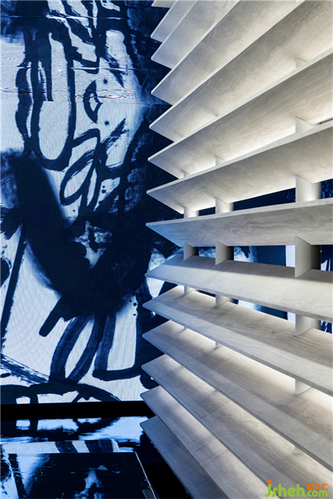 In addition to conveying awe and praise to the landscape, the designer tries to express the restoration of the connection between man and nature. The multimedia art displayed throughout the exhibition hall showcases the changing scenery of mountains, rocks, and ravines, which turn into the silky texture, the West Lake ripples, and finally the black and white ink.