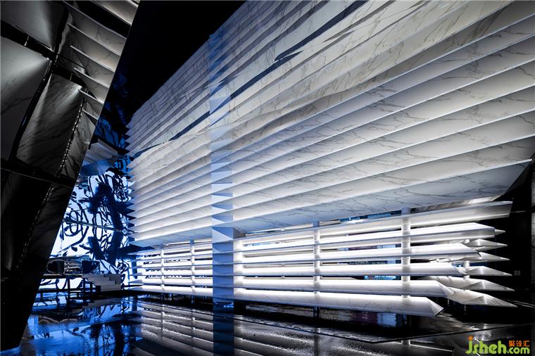 When stop andlook up,visitorswillfind outthe geometric objects irregularlydistributed in space. They are either suspended, inverted, or attached, sometimes reflecting the sparkling water, sometimesshining uponthe changing lines, just like the cliffstone in the canyon.They are the littlesubtleties that existdistinctlyin the great majesty.