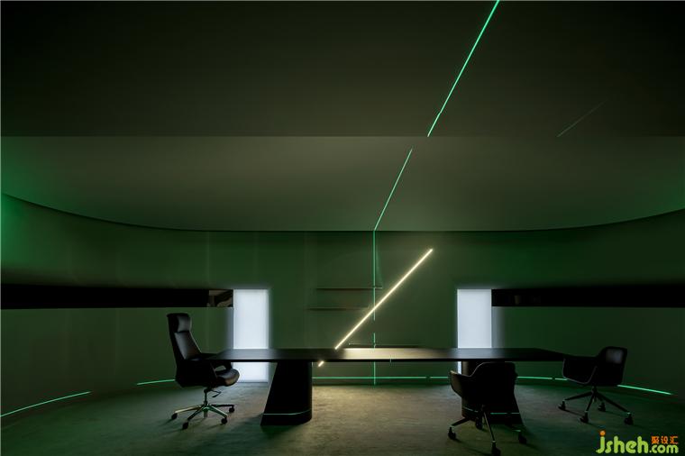 一層與二層的交互由此產(chǎn)生與完成。它的存在以一個(gè)X型的交叉方式,辦公室設(shè)計(jì)使四個(gè)功能區(qū)前后上下有序的分開(kāi)。