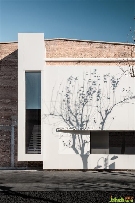 倉庫建筑原本開敞格局與優(yōu)越的挑高為創(chuàng)意類辦公空間提供了豐富的空間可能性,在留原工業(yè)遺產(chǎn)的線索之上,崔樹通過雕塑般的手法,在建筑內(nèi)外制造了的兩個體量,既實現(xiàn)了作為品牌總部的識別性外觀,同時滿足內(nèi)部不同功能的有機融合組織。