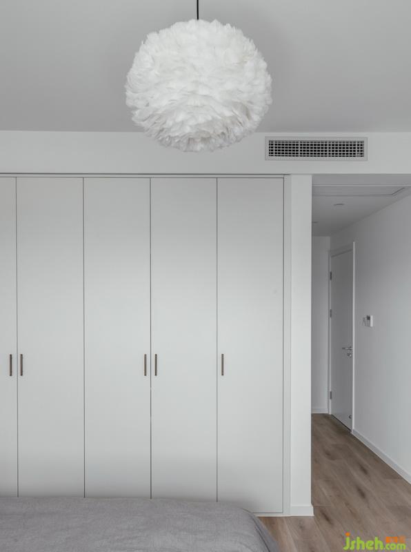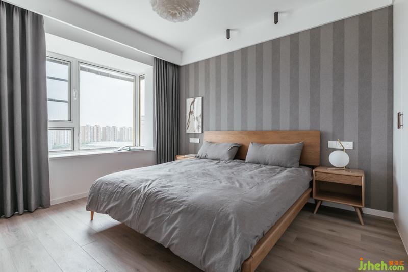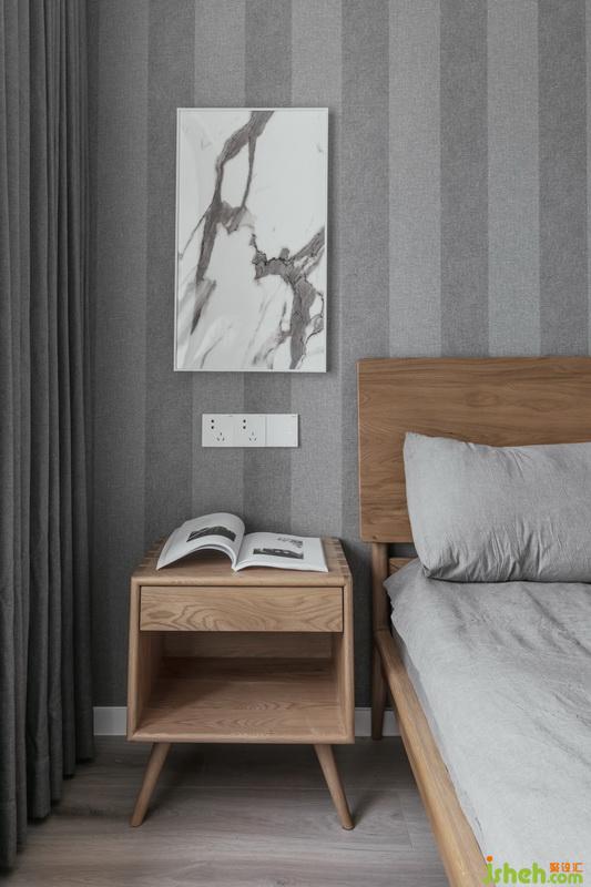 主臥室的衛(wèi)生間成為了衣帽間,用殘留的木飾面改造成一副裝飾畫,掛在床頭柜上方。#設計公司#