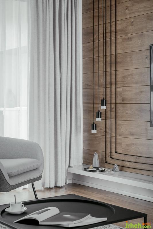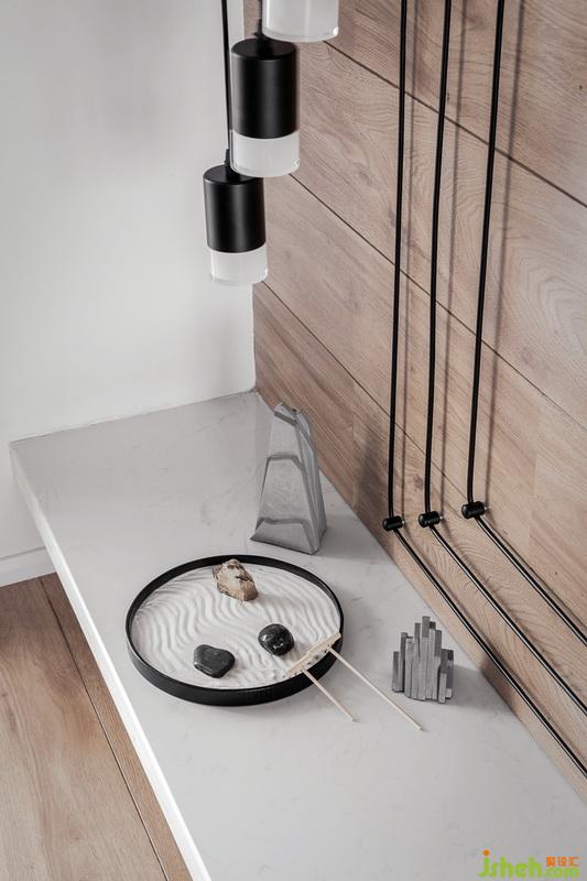 大面積的木色與白,搭配黑、灰色,使得自然溫潤(rùn)的環(huán)境中加以立體感。當(dāng)陽光傾灑,自然氣質(zhì)更趨濃郁,天然考究的餐具,現(xiàn)代美感又不失生活情調(diào)??臻g中的關(guān)系,在光下,身心感受無比輕松愜意,是清晨起身親手烤的面包,是風(fēng)塵仆仆歸家目睹這份溫馨,不再疲憊,做份精致的晚餐,把自己逗樂。生活本該是一場(chǎng)日夜更替的美麗,燈光下的暖流照樣是感動(dòng)身心的風(fēng)景。