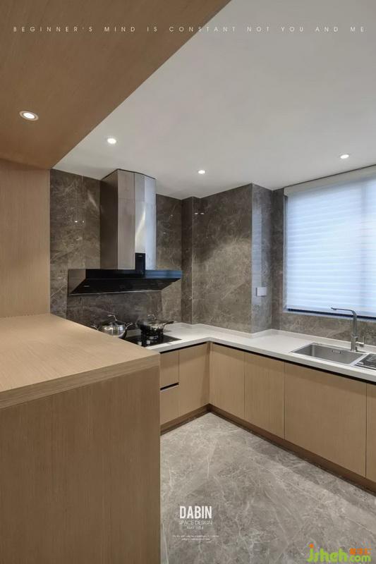 隨著人們健康意識(shí)越來(lái)越強(qiáng),清淡健康的飲食習(xí)慣越來(lái)越被當(dāng)下的年輕人接受。室內(nèi)設(shè)計(jì)師將原本要設(shè)置廚房移門的位置做成一個(gè)吧臺(tái)。業(yè)主可以在此倒上一杯紅酒,配上似有似無(wú)的爵士樂(lè),享受健康的營(yíng)養(yǎng)餐。原本不大的廚房空間上在視覺上也變得很通透。廚房,將不再是一個(gè)負(fù)責(zé)溫飽的功能區(qū),也是家中一個(gè)邂逅情調(diào)的區(qū)域。