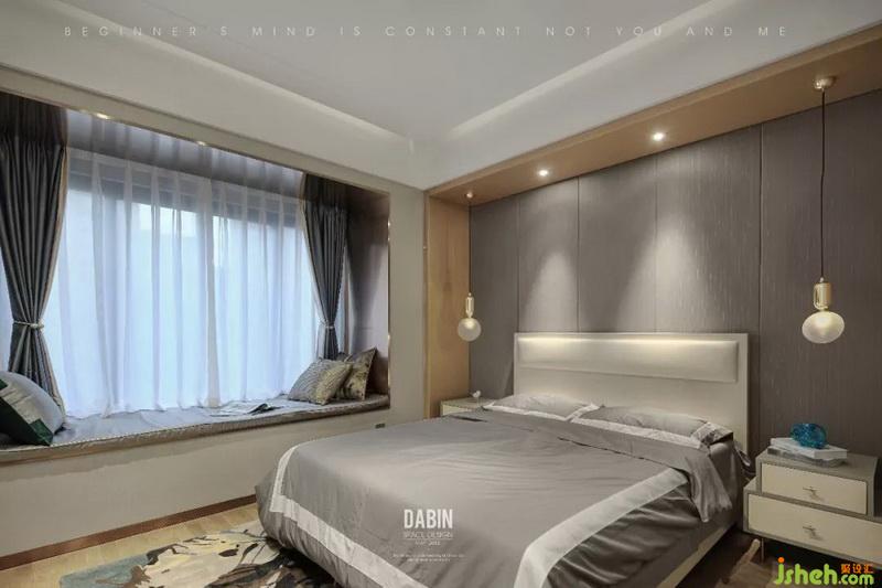 老人房的主色調(diào)則是選擇了偏向穩(wěn)重的灰色,飄窗的舒適設(shè)計(jì),可以讓爺孫兩代盡情的玩?;?dòng)。同樣窗套采用的金色不銹鋼包邊,呼應(yīng)主題,金色搭配灰色并沒有使空間變的跳躍,而是更加穩(wěn)重,適合老人的居住心境。