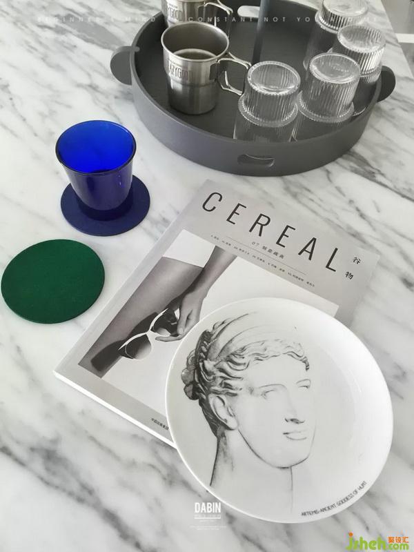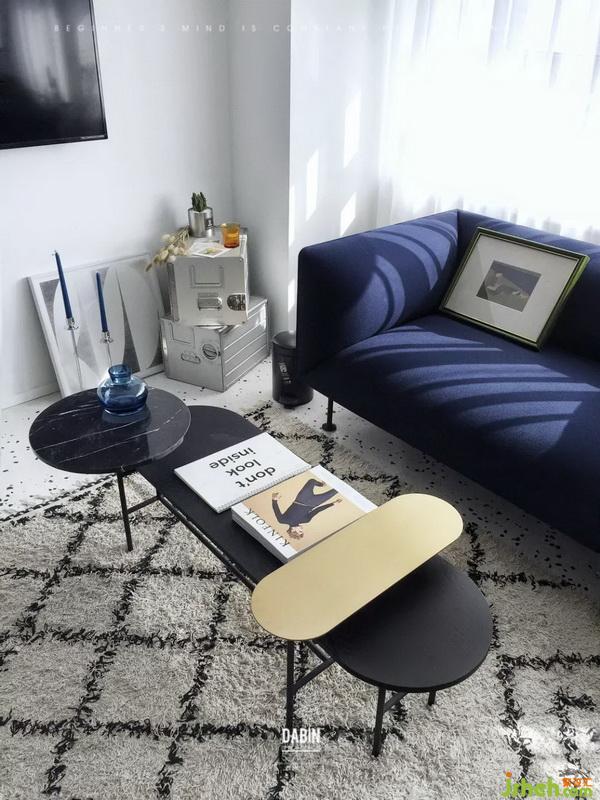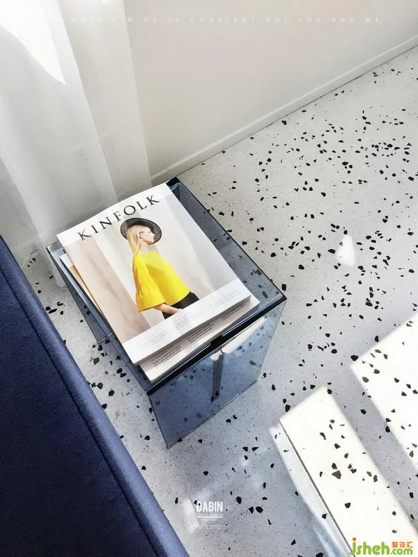 當你一進入,強烈的深藍色洋洋灑灑,鋪展開來。它們自由地散落,如同一條精美而隨性的地毯。藍色和透明的KARTELL邊幾隨意擺放,皮與鋼管的瓦西里椅,映襯在藍色的海洋,也漸漸失去了往日的冰冷。