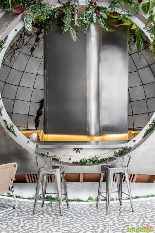 到訪的顧客可以坐在艙體內(nèi)部和外部就坐,看著外面的景色,仿佛駕駛著宇宙飛船在太空中遨游??Х戎圃炀衷O(shè)計(jì)沉浸式的太空咖啡之旅,將氛圍感提升到極致。露營元素提升了沉浸式用餐的體驗(yàn)感。金屬材質(zhì)的木箱和低矮的座椅,讓使用者離地表更近了一步,仿佛坐在火星的表面,閃爍的銀河系一覽無余。