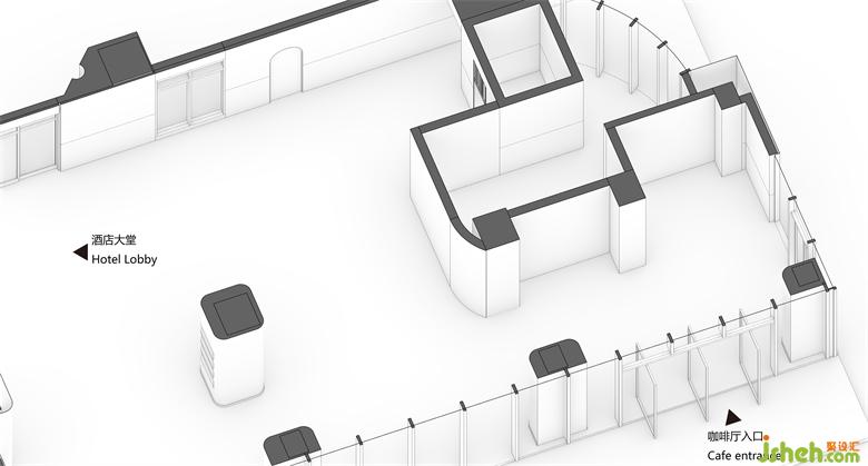 ▼移除墻體后,環(huán)繞柱子設(shè)置操作臺(tái),與主入口和大堂均形成良好的關(guān)系 After removing the walls, the worktop has been set around the beam, forming a good relationship between both the main entrance and the lobby