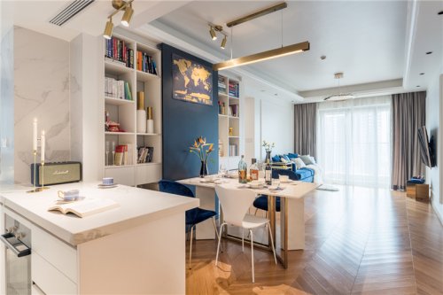 1:餐廳的墻往餐廳方向移,隔出來“T”字型走道,兩面墻凹陷處一邊放冰箱一邊放洗手臺,客衛(wèi)進行干濕分區(qū)。