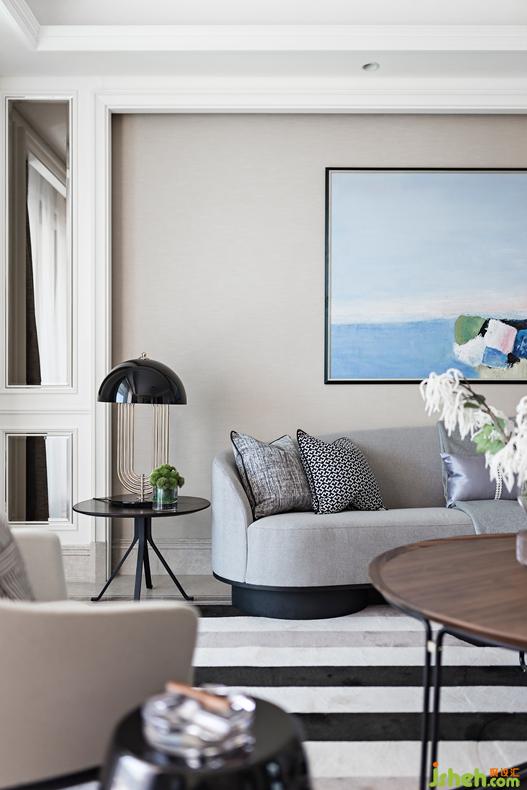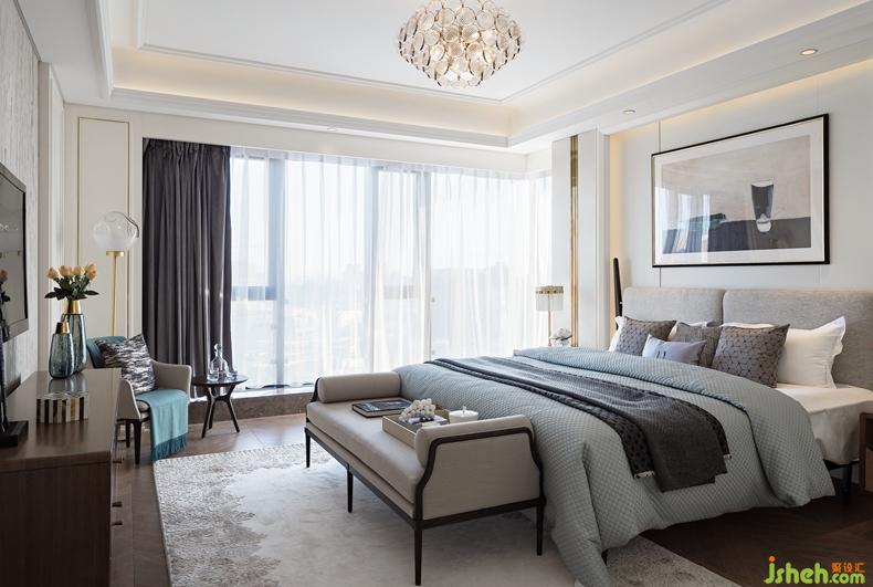 臥室將莫蘭迪色調(diào)運用得爐火純青,所有色彩披上一層朦朧的霧,透漏著低調(diào)的品質感;藍是貫穿全局的點綴色,或深或淺,靜謐自然的氛圍如一股清泉般緩緩地流淌其中。