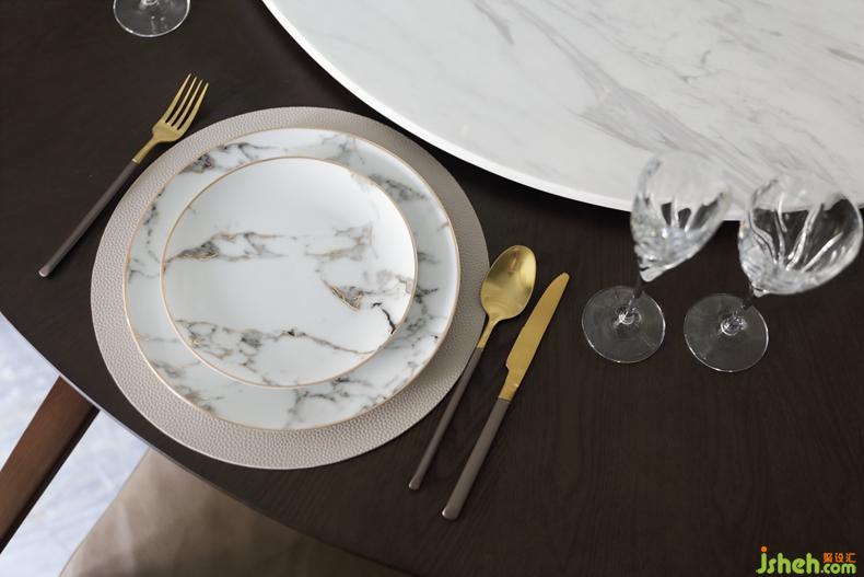 餐廳儲(chǔ)物柜加粗豎向線條分割大空間,細(xì)化直線構(gòu)造出三維層次感,對(duì)應(yīng)墻面的巖石抽象藝術(shù)畫(huà),實(shí)用性與藝術(shù)觀賞性俱佳。