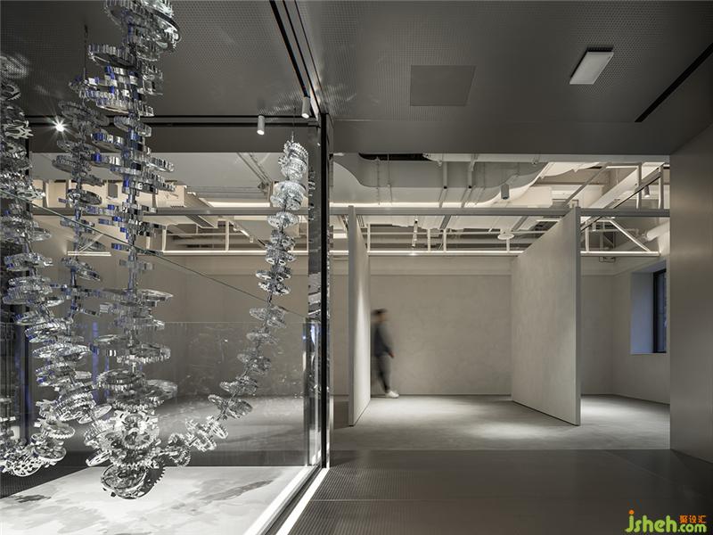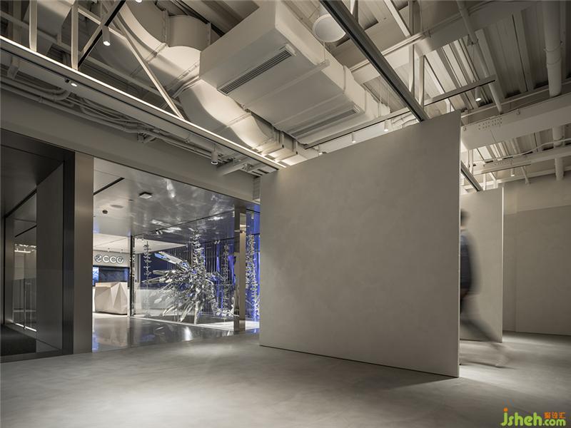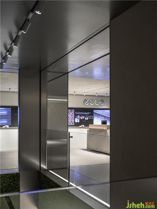 多功能區(qū)域中設(shè)置了可移動(dòng)的墻,可以根據(jù)需要自行調(diào)節(jié),空間底色選擇了灰色質(zhì)地,上海店鋪裝修設(shè)計(jì)簡練純粹的線條和留白平衡了金屬光澤的鋒利,更顯科技機(jī)能之美。