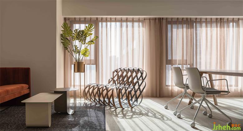 總經(jīng)理辦公室的靈感來(lái)自夏秋交際時(shí)的景色,辦公室設(shè)計(jì)參差浮現(xiàn)在各處的綠色、暖黃和朱紅,是豐收時(shí)節(jié)的色彩間奏,跳躍著點(diǎn)綴空間。