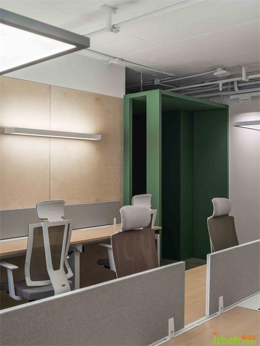 穿過(guò)開放的辦公區(qū),走廊的盡頭是一片綠色「森林」。在其中,人們冥想、神游,穿過(guò)晦暗與幽閉,獲得繁冗工作間隙的一絲明朗與透徹。