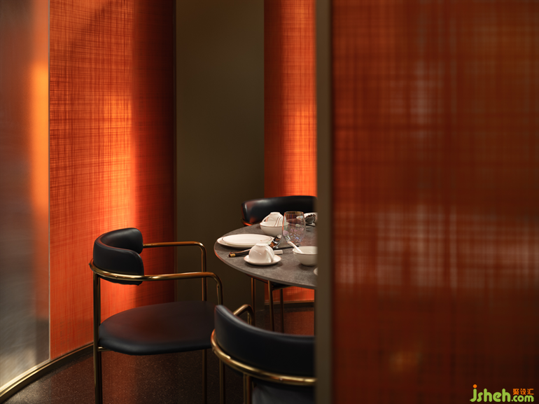 火鍋店設(shè)計所鼓勵和引導(dǎo)的,是其純粹的幾何形式和細膩的紋理??臻g中的高貴氣質(zhì)和歷史被大膽地以暗色調(diào)重新詮釋,作為背景,補充當(dāng)代極簡主義語言。以歷史為背書,不局限于傳統(tǒng)語義學(xué),從色彩、形式、藝術(shù)上,體現(xiàn)李唐繁盛、溫煦、光明的一面,以現(xiàn)代簡約的方式,對話中式古典的范式。