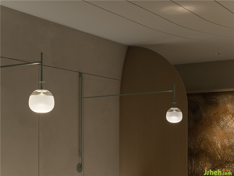 墻壁和地板上的燈光和陰影交錯逐漸降低了空間的重量。簡潔的壁燈和簡單的石材線條重疊,創(chuàng)造出一種錯位感,同時增強了精致風格,彰顯了空間的優(yōu)雅。