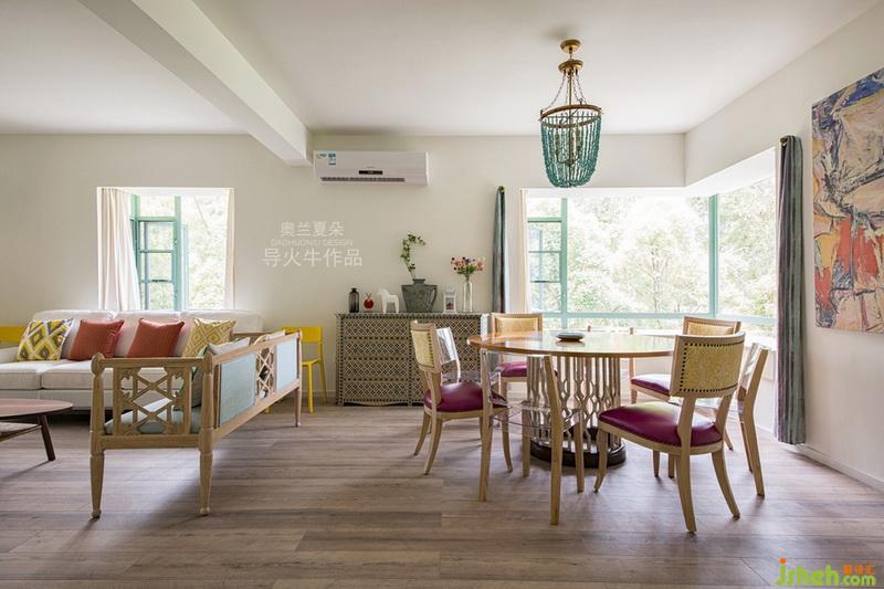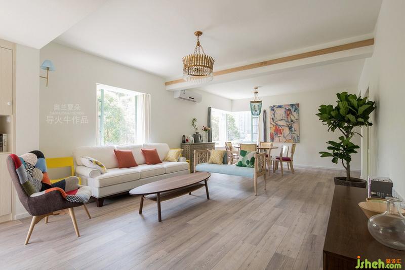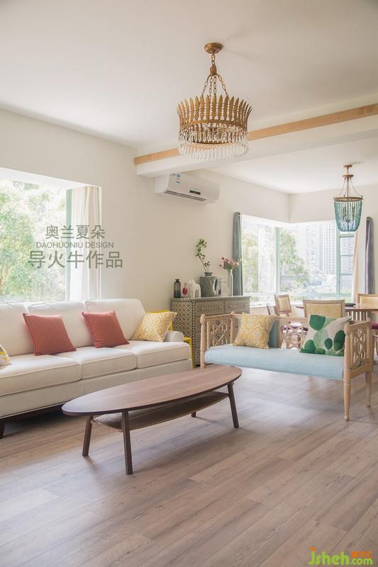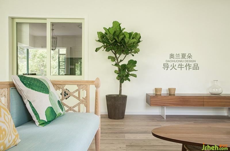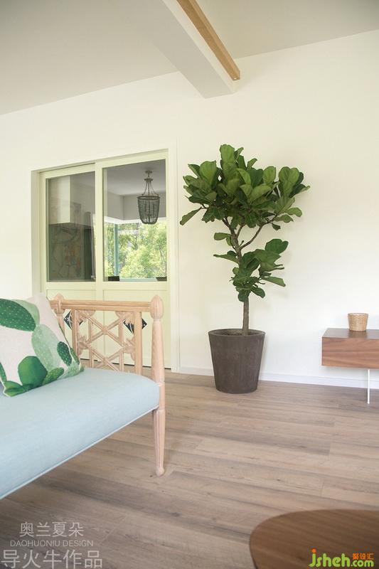 7月29號(hào)的清晨,攝影師一進(jìn)到這個(gè)房子大為贊嘆,陽光從3個(gè)自然采光門窗穿透進(jìn)來,整個(gè)客廳沐浴在神清氣爽的晨光中,這是今年所接項(xiàng)目中自然采光最好的一戶,空氣對(duì)流暢通無阻,春季窗外的鳳凰樹開得特別絢麗,夏季天臺(tái)的青瓜藤爬滿了欄桿,室內(nèi)的用色非常應(yīng)景。