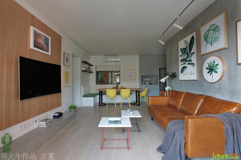 綠色劍蘭、沙漠仙人掌和紅色火烈鳥(niǎo)的顏色對(duì)比,客廳角落點(diǎn)輟的熱帶自然風(fēng)。