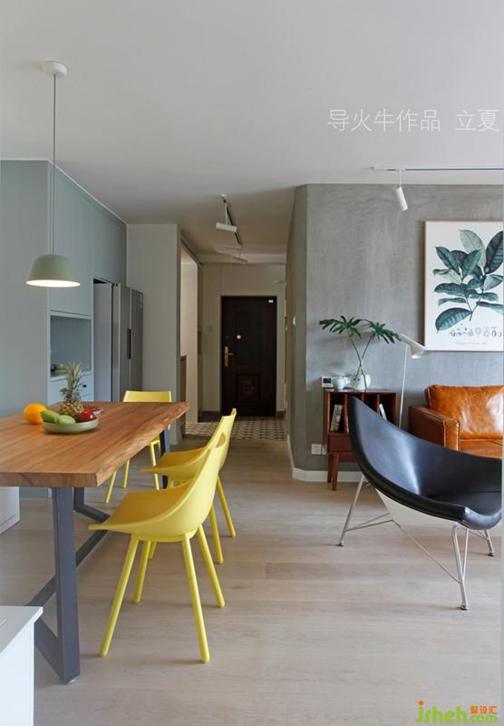 實(shí)木餐桌和檸檬黃餐椅組合,自然又有活力。