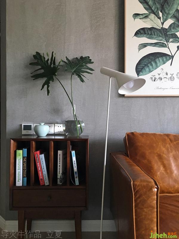 橡木邊幾和簡約落地?zé)魳?gòu)成舒適的閱讀小角落。